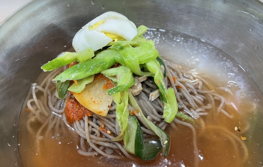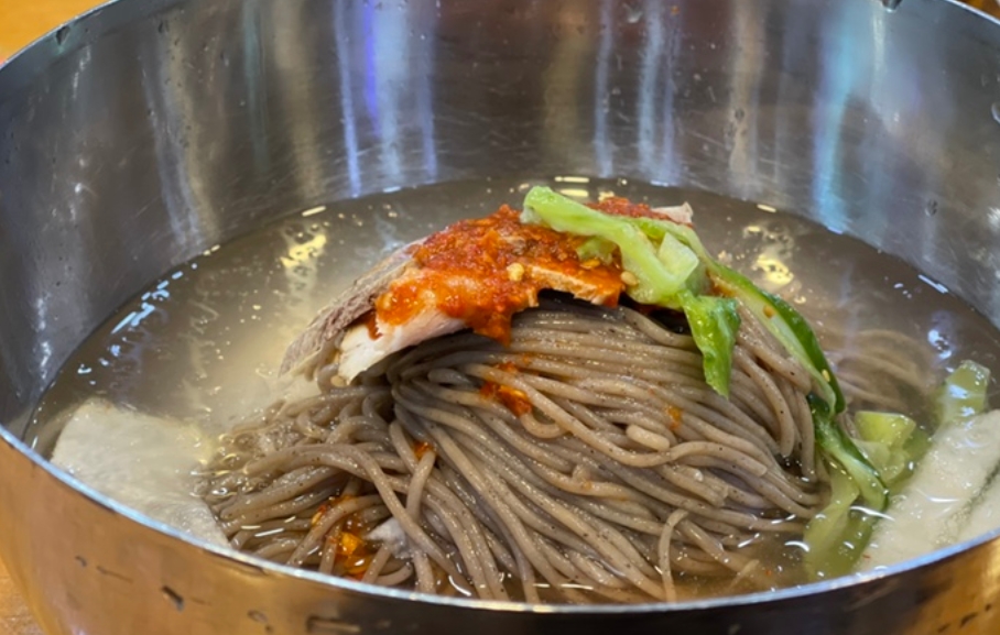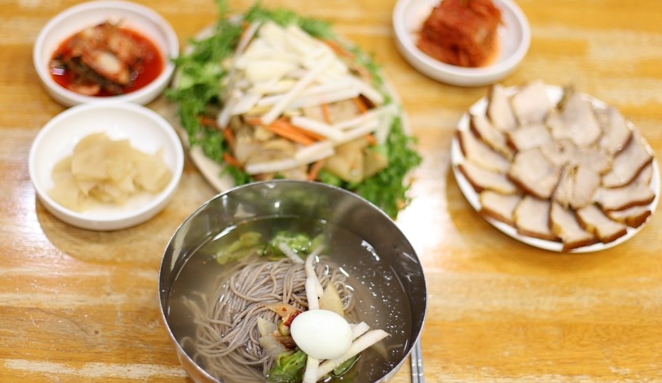 육수는 시원하고 깔끔한 맛을 내며, 신선한 무가 고명으로 올라가 그 맛을 더욱 돋운다. 이외에도 쫄깃한 메밀면을 직접 반죽해 뽑고, 고명으로는 오이, 배, 고기, 계란 등을 얹어 한 그릇의 냉면을 완성한다.