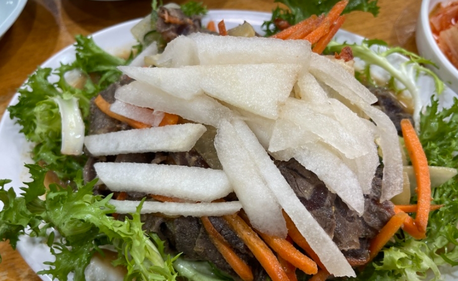 평남면옥에서 냉면뿐만 아니라 사이드 메뉴도 훌륭하다. 특히 편육과 겨자무침은 냉면과 함께 즐기기에 최적의 메뉴다. 부드럽게 삶아낸 편육은 고기의 본연의 맛을 그대로 살리며, 새콤달콤한 겨자무침은 입맛을 돋우는 완벽한 조화를 이룬다. 이 두 가지 사이드 메뉴는 냉면과 함께 먹을 때 그 맛이 한층 배가된다.