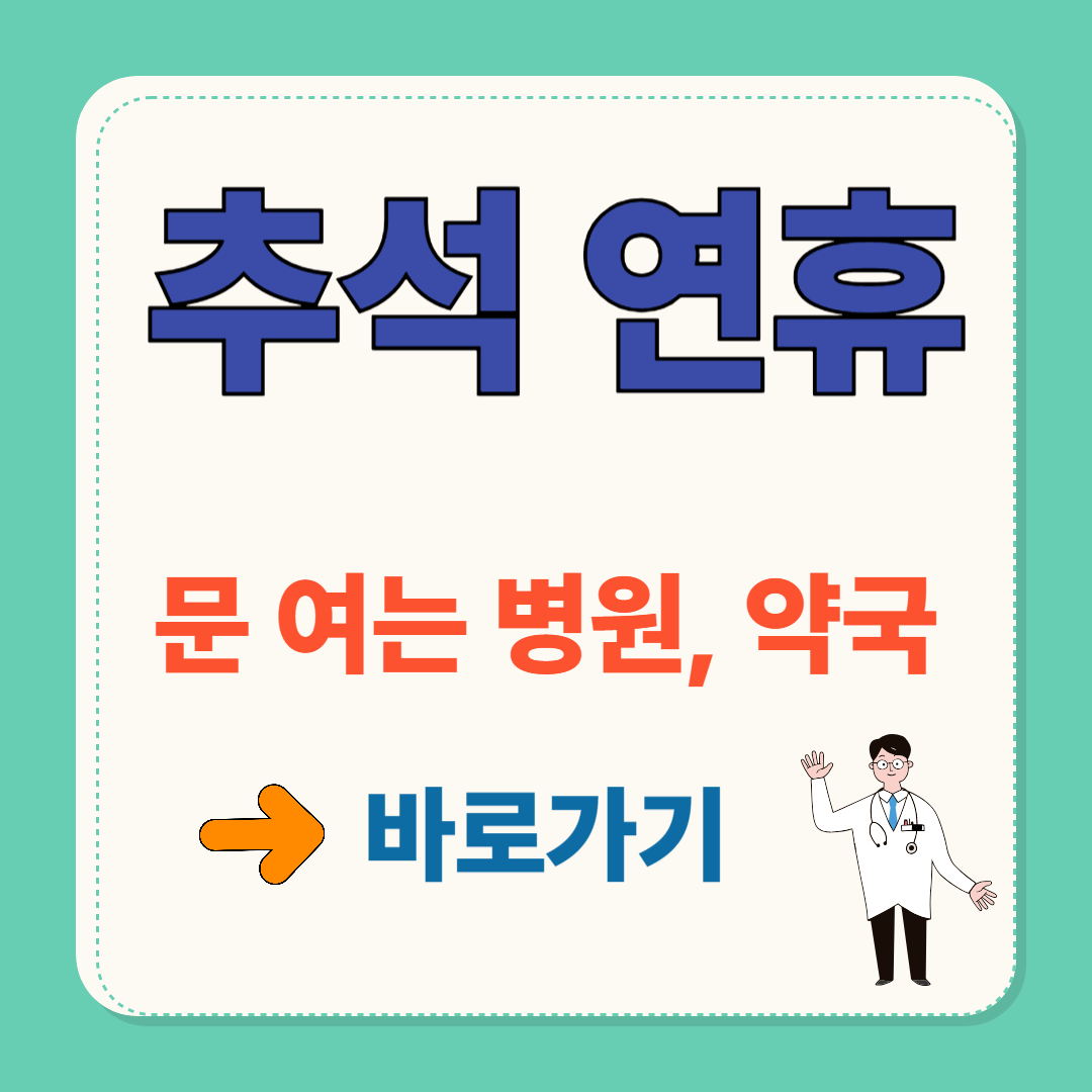 추석 연휴는 가족과 함께 보내는 특별한 시간입니다. 하지만 갑작스러운 건강 문제는 예고 없이 찾아올 수 있기 때문에, 미리 정보만 잘 알고 있어도 당황하지 않고 대처할 수 있습니다.
