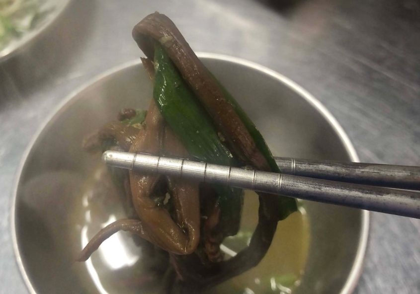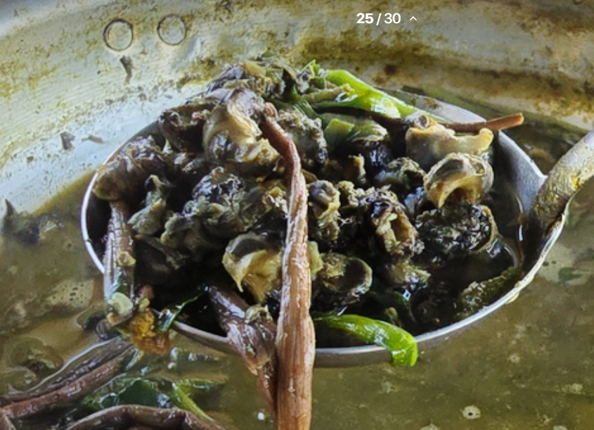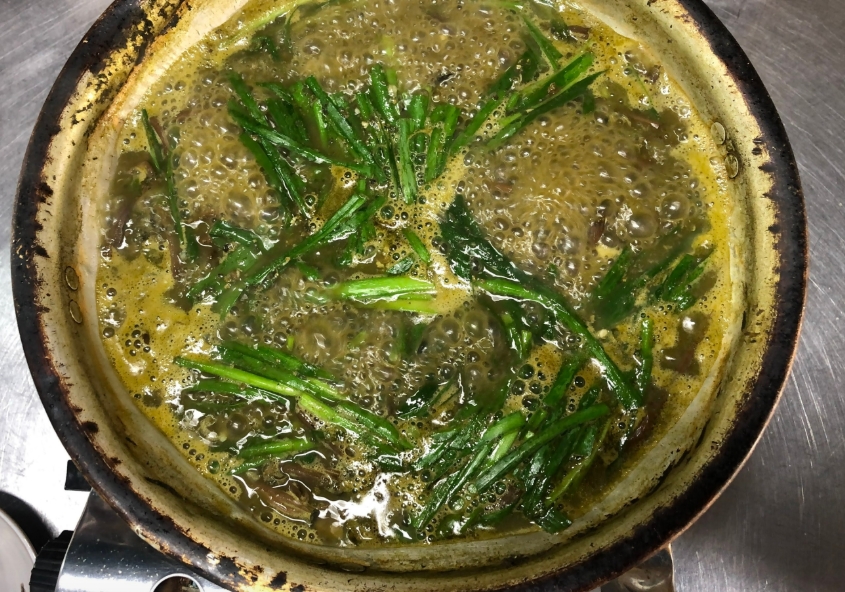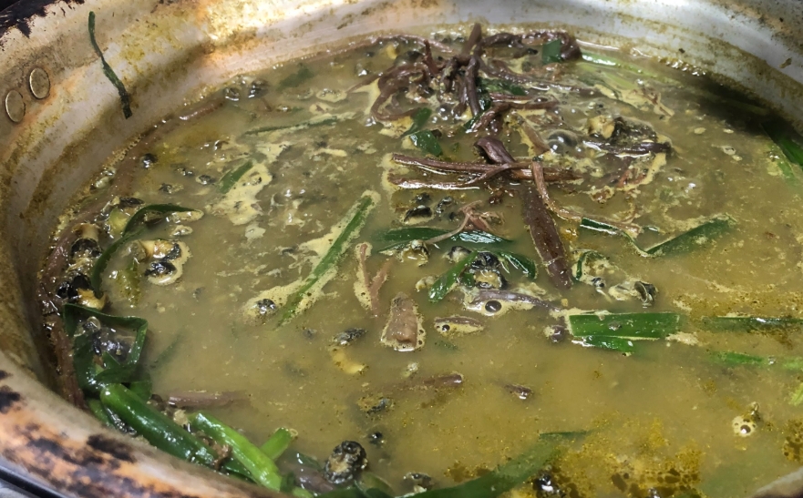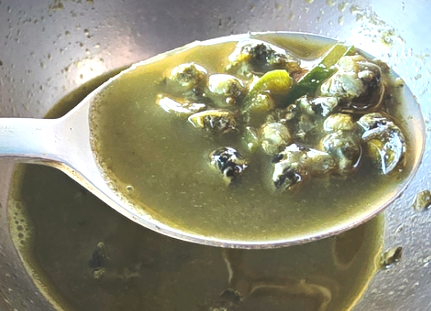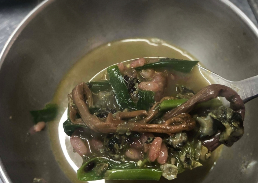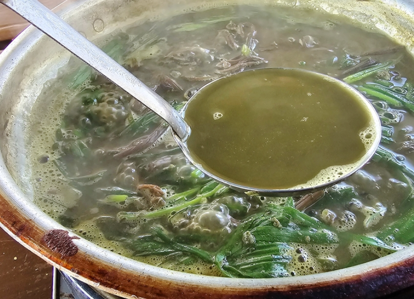 식탁에 오른 음식은 ‘고메기고사리탕’이다. 고메기는 보말을 뜻하는 제주 방언으로, 이 지역에서 오래전부터 먹어온 재료다. 바다에서 나는 보말과 제주에서 자란 고사리를 함께 넣고 오랜 시간 끓여내 국물이 맑고 담백하다.