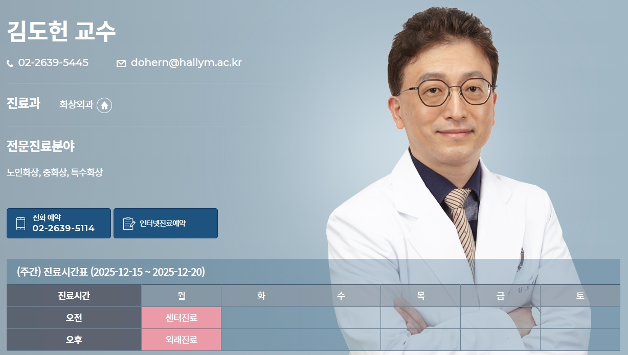 명의 "화상"편에서 출연하는 "화상외과 김도헌 교수" 진료예약은 아래에서 확인할 수 있어요.