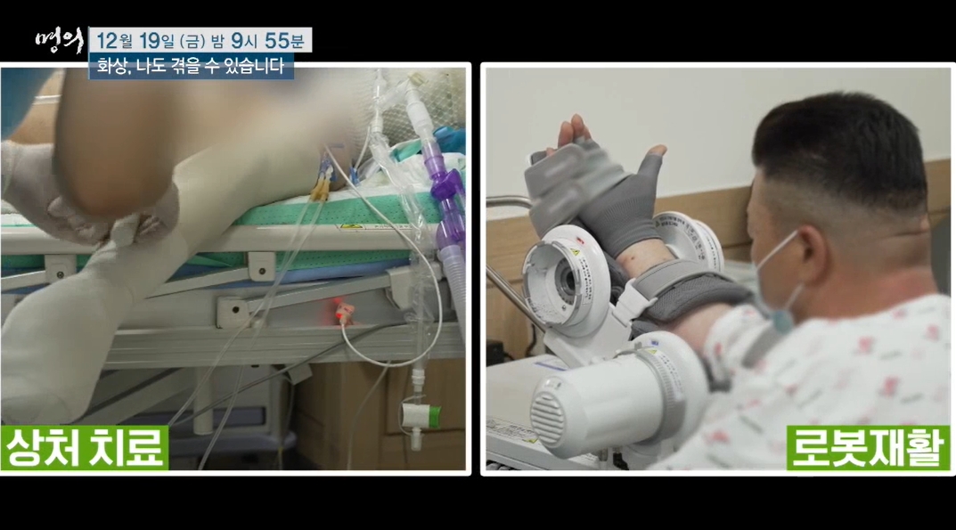 화상은 나이와 환경을 가리지 않고 누구에게나 발생할 수 있는 사고라는 점이 반복해서 강조된다. 이어 가스통 폭발로 전신 3도 화상을 입고 호흡기까지 손상돼 기계호흡에 의존해야 했던 30대 여성 사례를 통해, 중화상이 단순한 피부 손상을 넘어 생명을 위협할 수 있음을 보여준다.