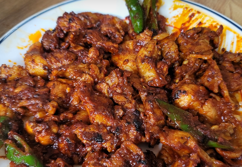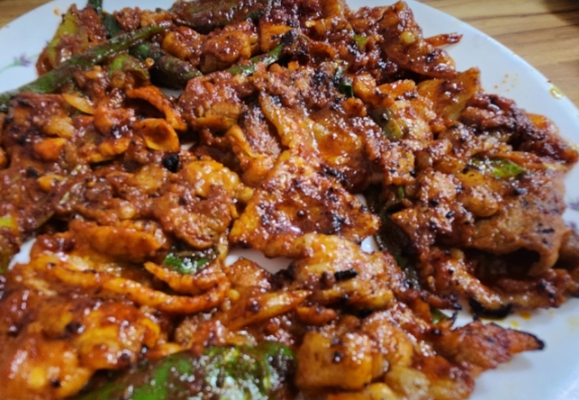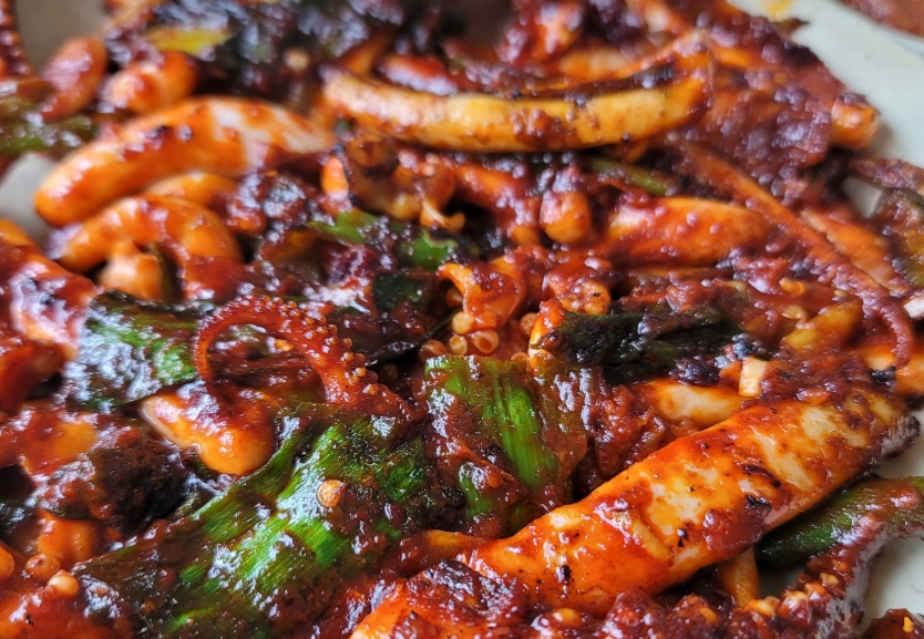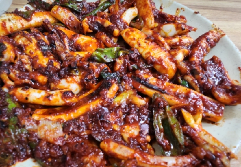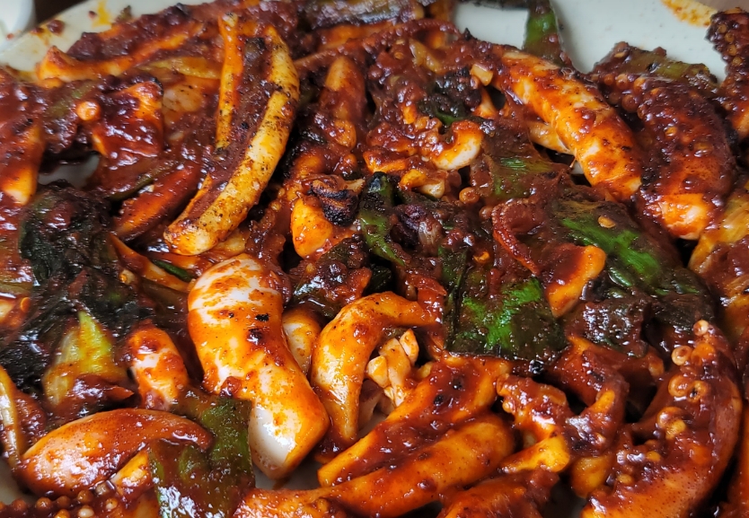 막회를 맛본 뒤 세 사람은 분위기를 바꿔 불향 가득한 불고기집으로 발걸음을 옮겼다. 불판 위에서 지글지글 익어가는 오징어불고기와 닭불고기의 소리와 향기만으로도 현장의 열기가 느껴졌다.
